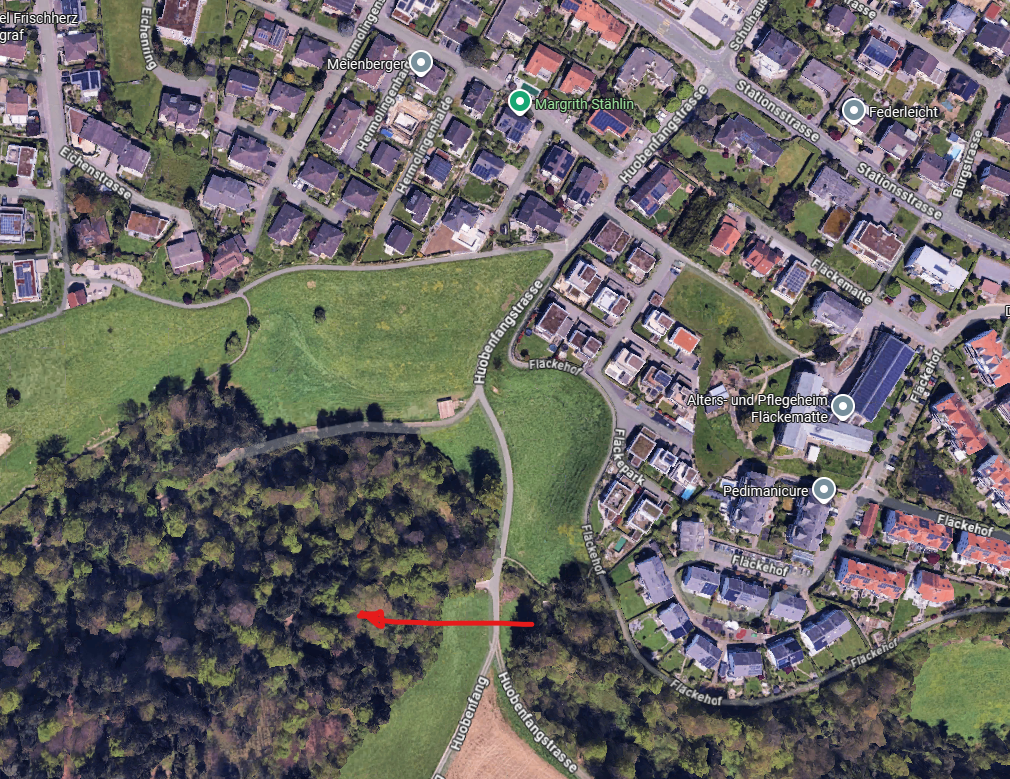 Waldspielgruppe: Nach dem Rastplatz rechts abbiegen.Das Spieltruckli befindet sich oberhalb vom Fussballplatz.